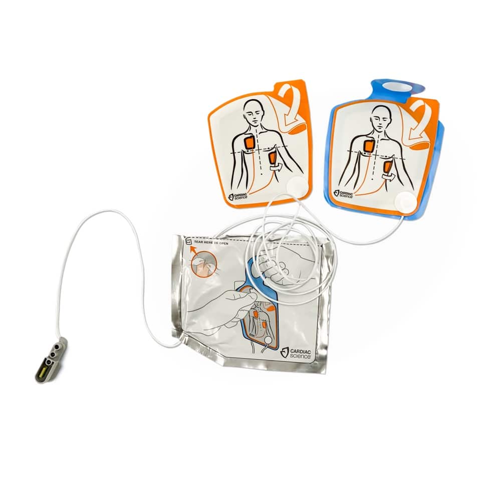 These non-polarized pads greatly simplify the rescue process for inexperienced users in stressful circumstances. These pads can be placed in either position on the chest, (upper-right or lower-left) reducing further confusion and saving critical time during a rescue. These clever electrode pads use patented Rescue Ready® technology and embedded circuitry. Cardiac Science G5 Intellisense® defibrillation pads communicate presence, functionality, patient type, energy and CPR protocol, pad expiration, and other vital information directly to your Powerheart G5.