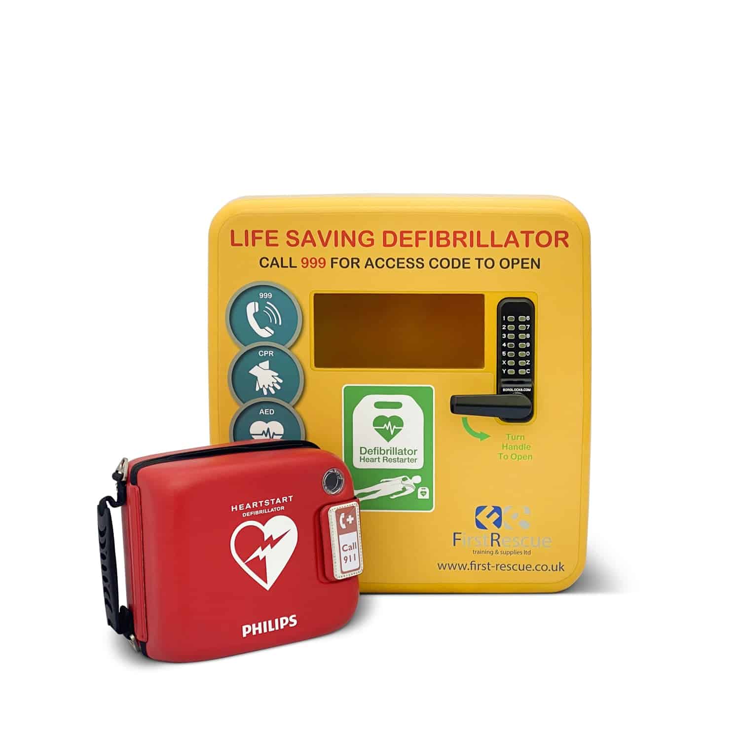 The Defibstore 4000 outdoor defibrillator cabinet is supplied with a heater, motion sensor light and keypad lock. This cabinet requires installation by a qualified electrician.