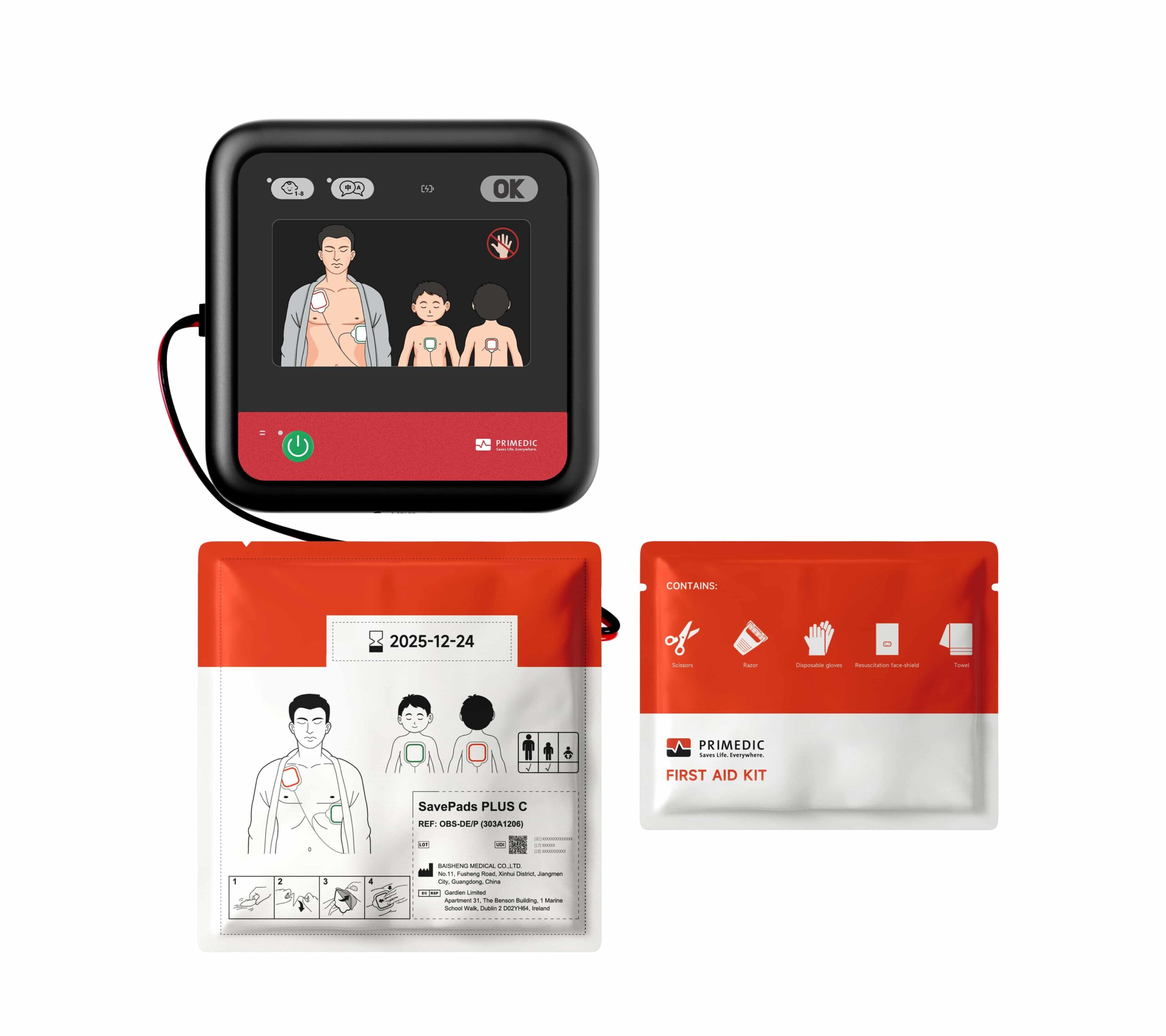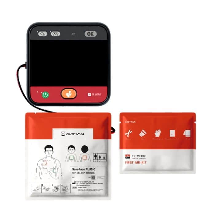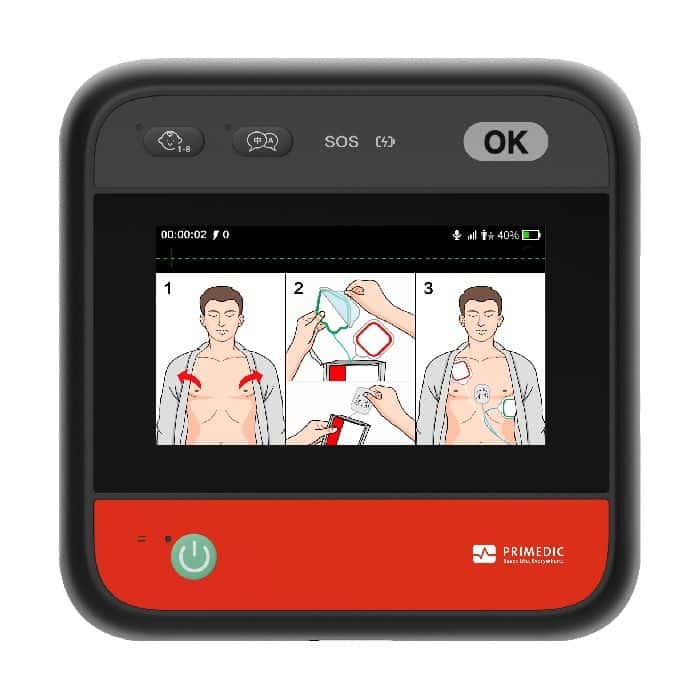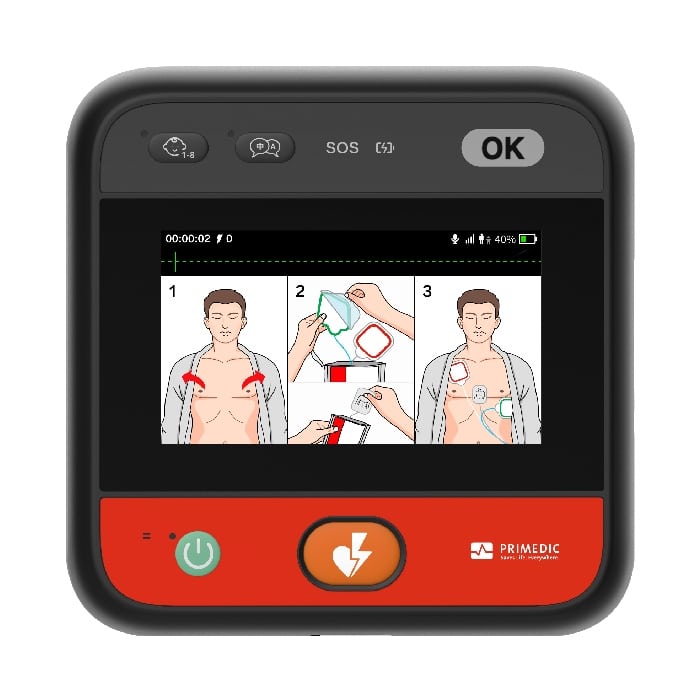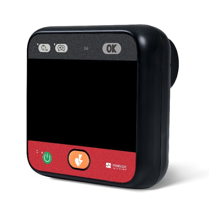 The newest defibrillator from Primedic, the HeartSave myPAD combines portability and ease of use to allow trained and untrained responders to save a life in a cardiac arrest situation. The Connect version of the myPAD also includes an LCD screen and a wireless cellular connection for remote management of the device and instant notifications