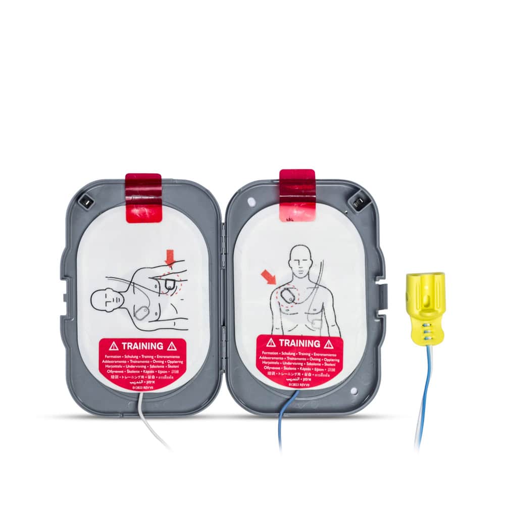 Important note: if using with a live Philips FRx follow the user guide and disconnect the training pads after use. Once disconnected your live AED pads should be plugged back in so the FRx is ready for use.